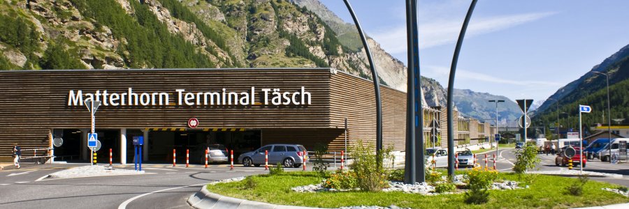 Entweder parkieren Sie Ihr Auto im Parkhaus «Matterhorn Terminal» am Bahnhof Täsch oder bei einem der privaten Taxiunternehmen und fahren bequem mit dem Taxi zum Dorfeingang von Zermatt.