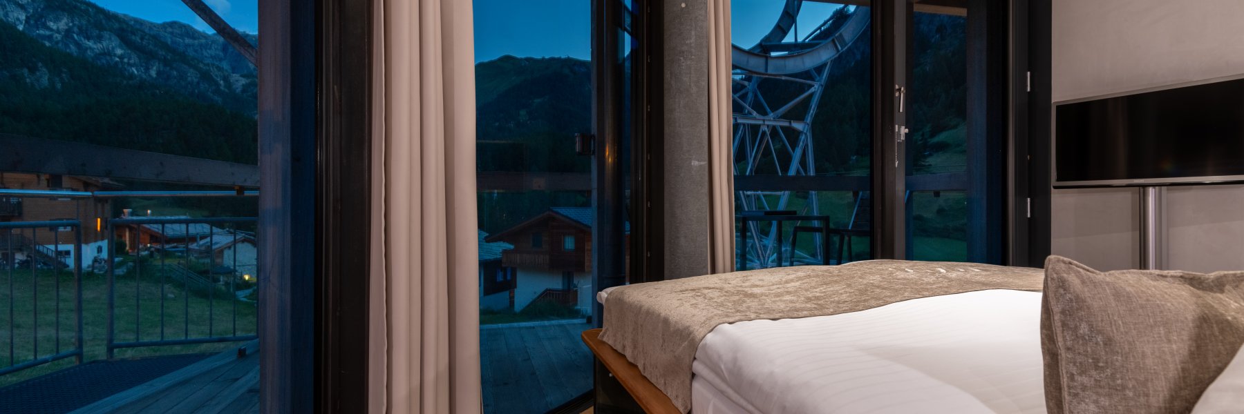 In a stylish Futura Room of 30 m2 large windows and a balcony offer a variety of impressive views to the Zermatt mountains. (Occupancy max. 2 persons.)