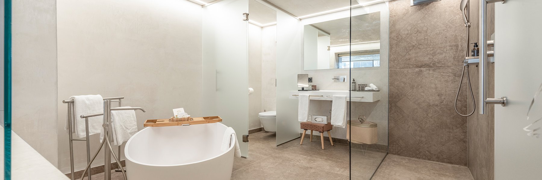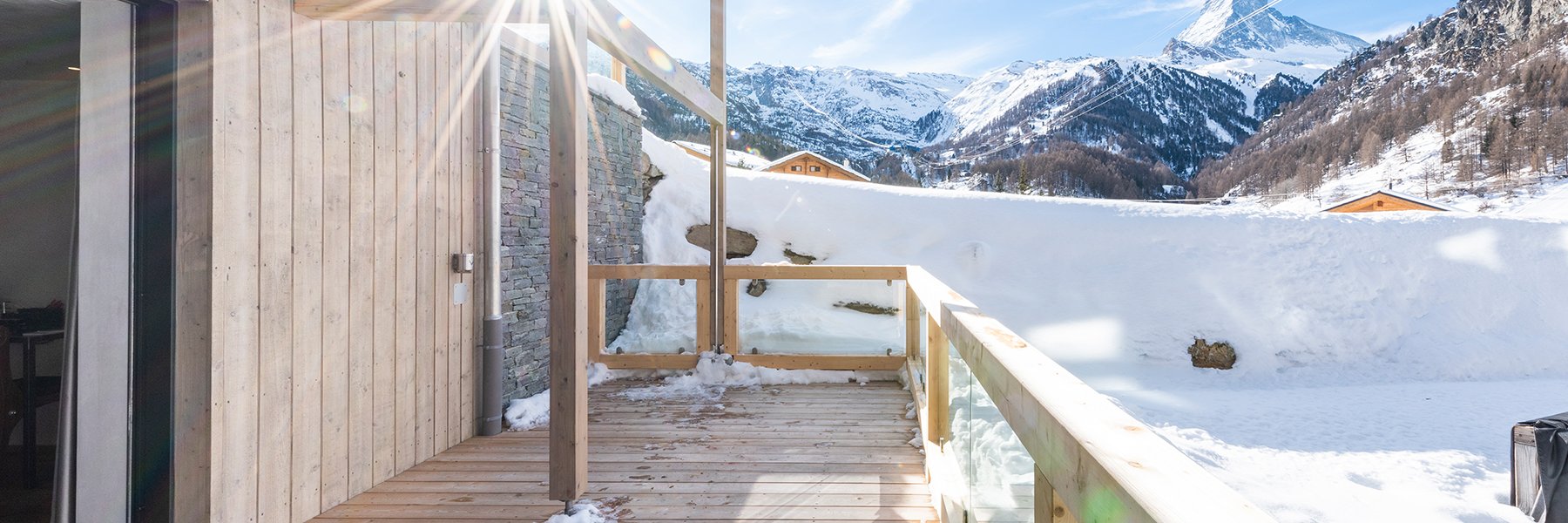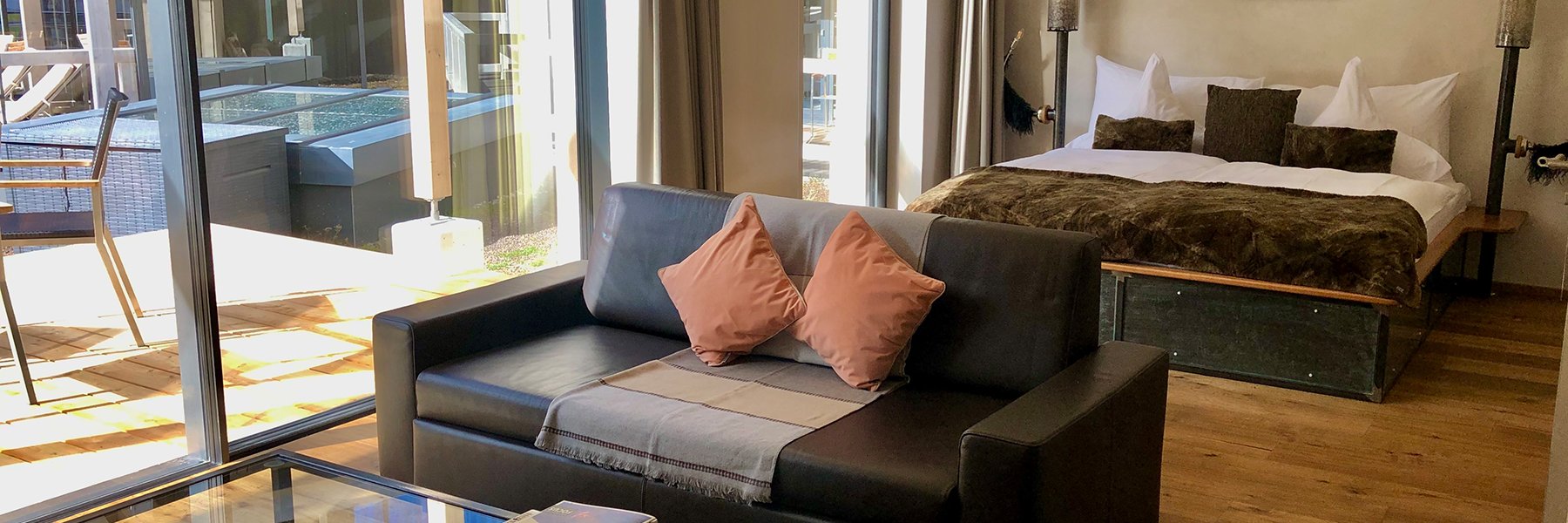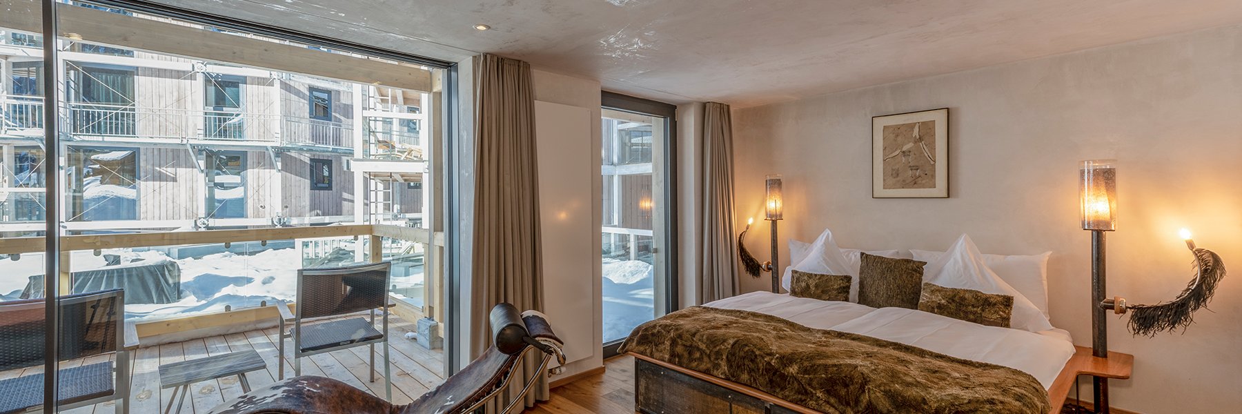The Junior Suite impresses with its spacious rooms and terrace with side view to the famous Matterhorn. The bedroom with stylishly illuminated bedstead is open to the cosy living room. The spacious bathroom with freestanding bathtub and rain shower invites you to relax. (Occupancy max. 4 persons)